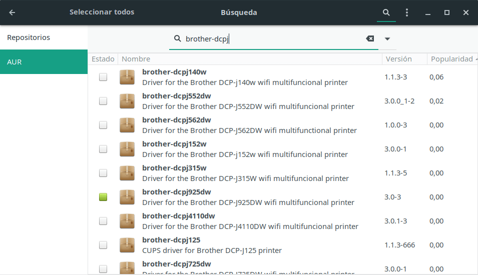 Para instalar el driver de una impresora en red en Manjaro Gnome (en KDE la instala perfectamente) previamente deben estar instalados los repositorios de AUR.